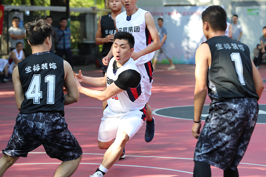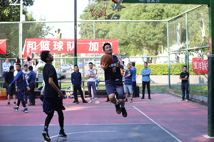 ▲9月23日小組循環(huán)賽中,寶鷹集團以絕對優(yōu)勢領(lǐng)先新藝華建筑、華加日幕墻籃球隊,提前出線晉級本次籃球賽十六強。