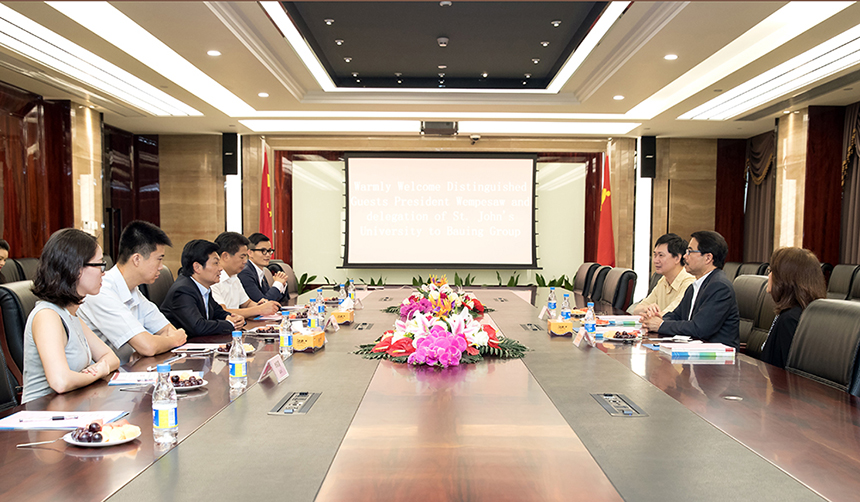美國圣約翰大學(xué)校長孔拉多·甘伯紹(Conrado Gempesaw)對寶鷹集團(tuán)近年來取得的成就表示了肯定,并簡要介紹了圣約翰大學(xué)的基本概況及美國經(jīng)濟(jì)現(xiàn)狀??桌唷じ什B(Conrado Gempesaw)校長在發(fā)言中說,圣約翰大學(xué)是一所擁有國際聲譽的天主教大學(xué),也是紐約州主要的私立大學(xué)之一,嚴(yán)格的學(xué)術(shù)項目,一流的師資隊伍吸引著美國各州和世界各地的學(xué)子前往就讀。他非常期待能與寶鷹集團(tuán)在人才交流與培養(yǎng)、學(xué)術(shù)培訓(xùn)等領(lǐng)域展開密切合作,建立校企合作關(guān)系。