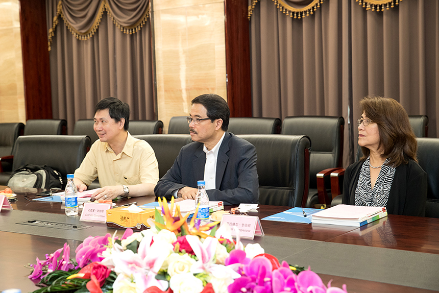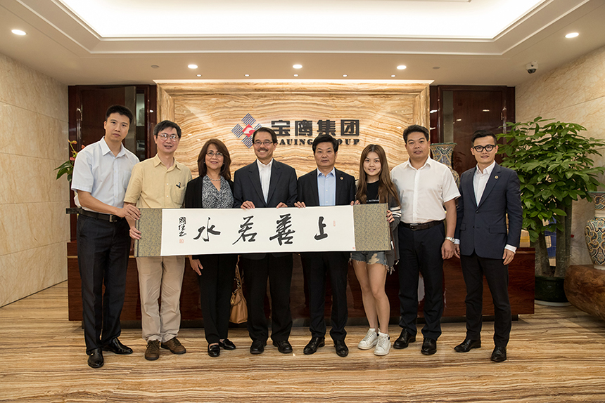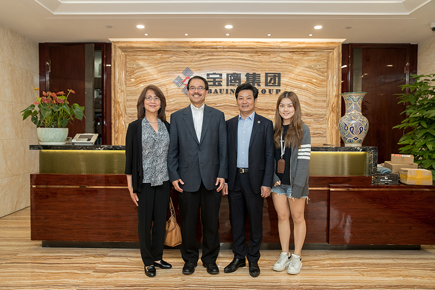 孔拉多·甘伯紹(Conrado Gempesaw)校長夫人克拉維爾·甘伯紹 (Clavel Gempesaw)、圣約翰大學(xué)國際教務(wù)處特邀顧問,生物技術(shù)學(xué)院主任陳哲生(Jason Chen)、寶鷹股份董事長古少波、寶鷹股份副總裁王暉、寶鷹集團(tuán)國際事業(yè)部總經(jīng)理吳義課參加交流。