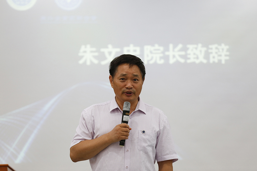▲ 廣東外語外貿(mào)大學商學院院長朱文忠表示希望企業(yè)能夠把實戰(zhàn)經(jīng)驗帶到培訓課程中