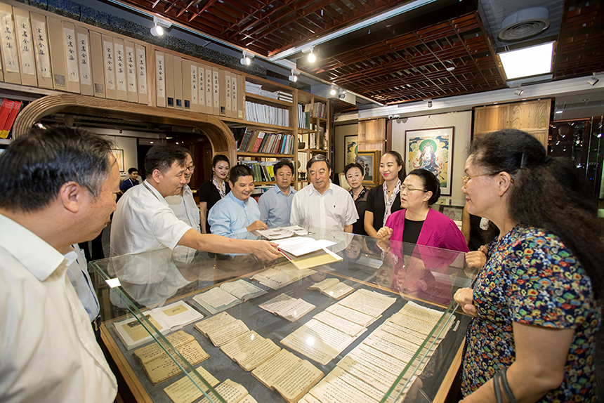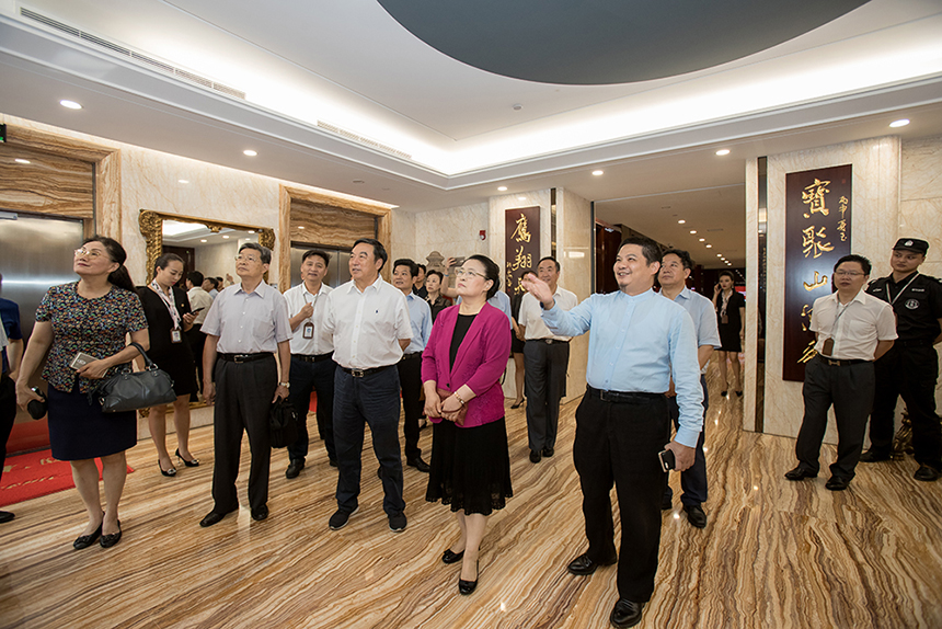 ▲全國政協(xié)科教文衛(wèi)體委員會副主任、中國經(jīng)濟(jì)社會理事會副主席張秋儉一行參觀寶鷹集團(tuán)辦公環(huán)境及寶鷹美術(shù)館