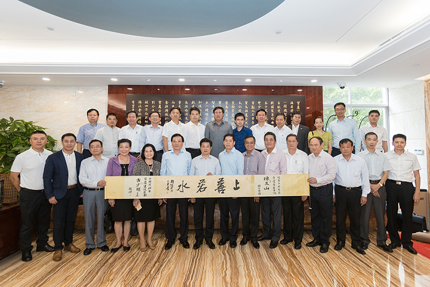 ▲寶鷹集團(tuán)向越南共產(chǎn)黨中央委員、奠邊省委書(shū)記陳文山贈(zèng)送周?chē)?guó)城書(shū)法作品《上善若水》