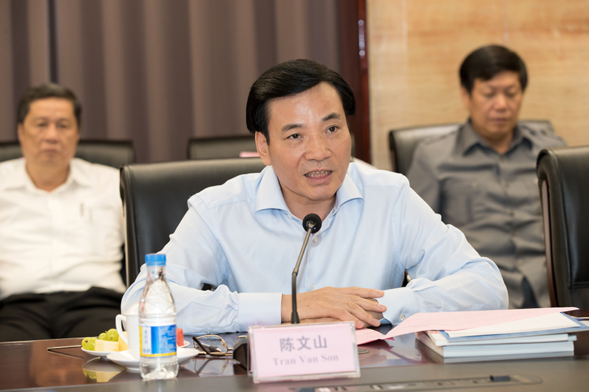 ▲越共中央委員、奠邊省委書(shū)記陳文山表示建議寶鷹集團(tuán)在新城市建設(shè)等方面在越南進(jìn)行投資