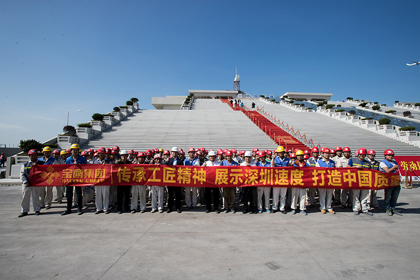 在隨后召開的誓師大會(huì)上,寶鷹集團(tuán)總裁古樸為項(xiàng)目部人員加油打氣,鼓勵(lì)項(xiàng)目部人員協(xié)同作戰(zhàn),攻堅(jiān)克難。他表示,寶鷹集團(tuán)自承接項(xiàng)目工程以來,面臨時(shí)間緊,任務(wù)重等多重問題。百人攻堅(jiān)克難,背水一戰(zhàn)。在環(huán)境極端惡劣的情況下,寶鷹人不畏艱難,積極應(yīng)對各種挑戰(zhàn),做好了各項(xiàng)防控防風(fēng)險(xiǎn)措施。一切致力于做到精益求精,嚴(yán)格管控,杜絕絲毫誤差。寶鷹人要向世界展示企業(yè)實(shí)力和品質(zhì)高度,全力以赴投入此項(xiàng)目,發(fā)揮以“智、敏、勇”為核心的企業(yè)文化精神,傳承工匠精神,展示深圳速度,打造中國質(zhì)量!