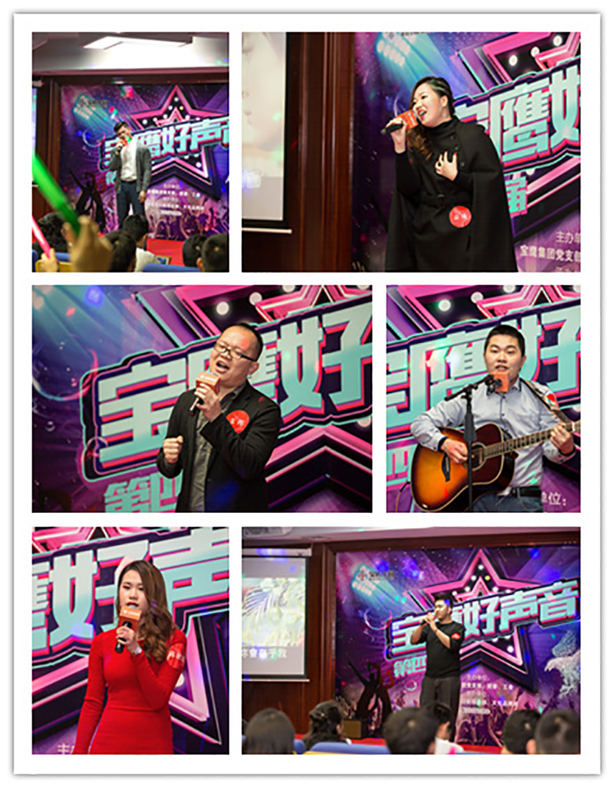 1月8日,第四屆“寶鷹好聲音”決賽在寶鷹講堂激情開唱。本屆“寶鷹好聲音”延續(xù)前三屆傳統(tǒng),分初賽和決賽兩個(gè)環(huán)節(jié),邀請專業(yè)評(píng)委團(tuán),參賽選手既能角逐,又可獲得專業(yè)培訓(xùn),吸引了集團(tuán)本部及各子公司共計(jì)35名選手踴躍參與。