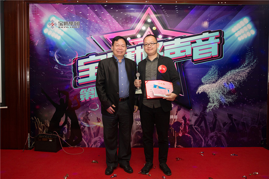 ▲寶鷹集團(tuán)總裁成湘文為冠軍獲得者工程綜合部朱暉頒獎(jiǎng)