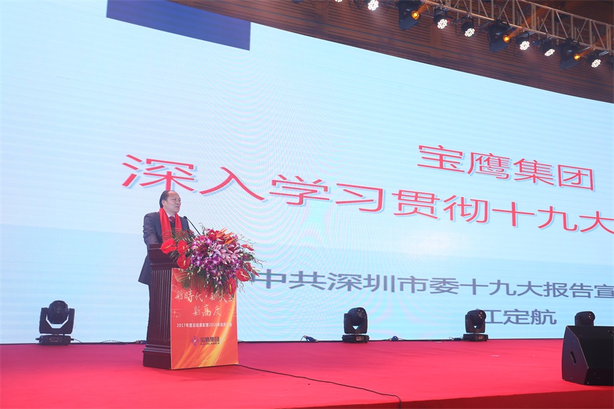 寶鷹集團董事局主席古少明在年會上發(fā)表致辭。他以寶鷹集團學(xué)習(xí)貫徹十九大精神為契機,從十九大精神對企業(yè)發(fā)展的引領(lǐng)作用、寶鷹集團踐行“一帶一路”倡議的成果經(jīng)驗、企業(yè)傳承傳播中國優(yōu)秀傳統(tǒng)文化樹立“文化自信”的責(zé)任與使命、企業(yè)如何在“現(xiàn)代化經(jīng)濟體系”發(fā)揮作用四個方面為寶鷹集團未來發(fā)展指明了方向。