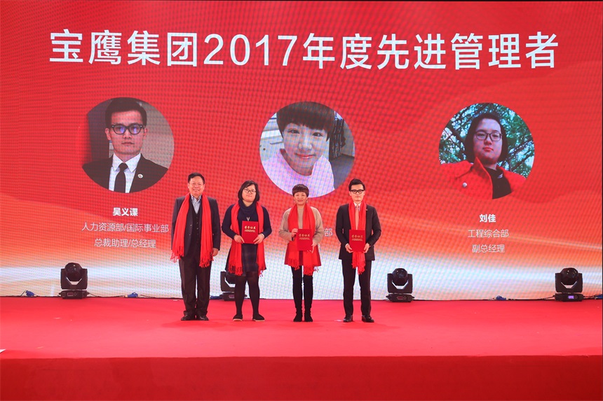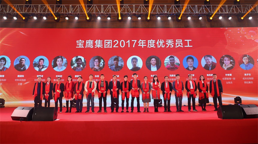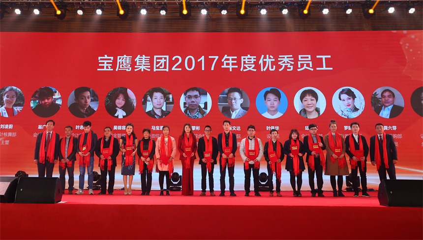 反映平凡崗位上寶鷹人堅守精神的短片《你好,寶鷹人》在大會上播出,引發(fā)了現(xiàn)場觀眾的共鳴和思考。隨后,大會進入工作表彰環(huán)節(jié),寶鷹集團監(jiān)事會主席胡蘭萍依次宣讀了寶鷹集團2017年總結(jié)表彰名單。