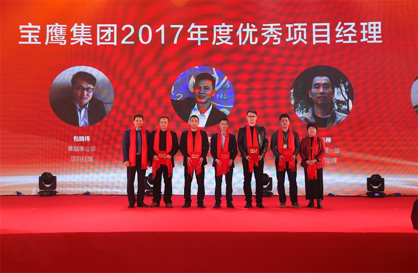 ▲寶鷹集團監(jiān)事會主席胡蘭萍宣讀 寶鷹集團2017年優(yōu)秀員工、優(yōu)秀項目經(jīng)理、先進管理者、精品項目部、安全文明施工示范項目部、先進集體、團隊建設(shè)突出貢獻集體和項目責(zé)任制獎勵的獲獎名單