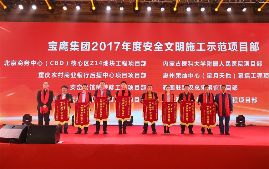 成湘文總裁在大會上作了寶鷹集團2017年年度工作報告,并全面部署了寶鷹集團2018年的工作。他系統(tǒng)的總結(jié)了2017年寶鷹集團在國內(nèi)外市場的業(yè)績突破和重大榮譽,肯定了寶鷹集團踐行“一帶一路”倡議取得的優(yōu)質(zhì)成果。在部署2018年工作時,成湘文總裁提出2018年是“質(zhì)量、管理”年,闡述了狠抓流程管理和質(zhì)量控制,堅持落實“工匠精神”,塑造“精品工程”的堅定決心。