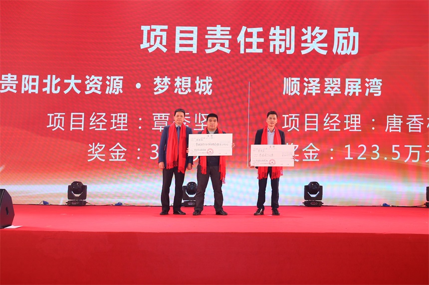 ▲寶鷹集團副總裁溫武艷,財務(wù)總監(jiān)曾智為第一批精品項目部頒獎