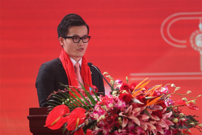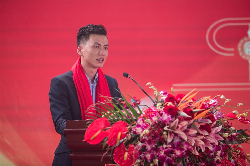 ▲優(yōu)秀員工代表馬寶恩上臺發(fā)言