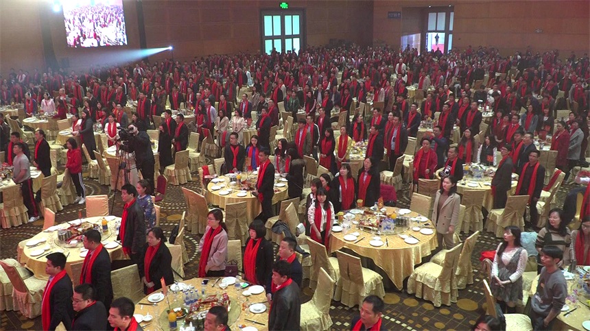 ▲年會現(xiàn)場齊唱國歌