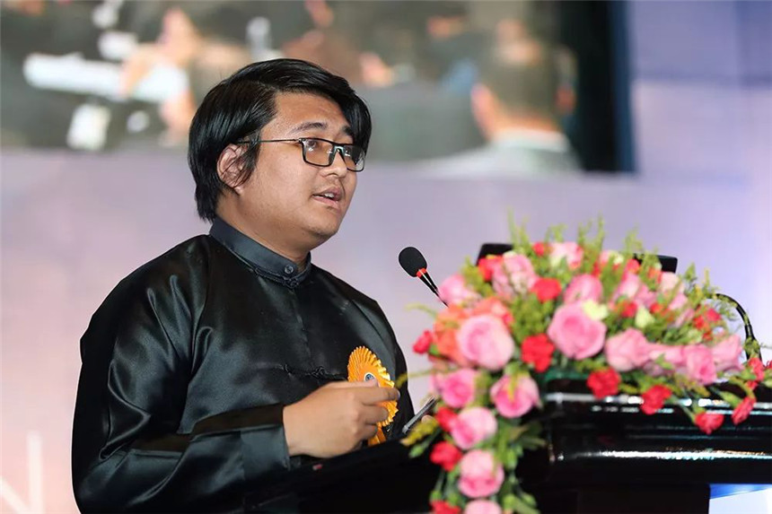 ▲ KMA集團(tuán)仰光市高樓項(xiàng)目執(zhí)行董事 U Kaung Htet Tun 介紹集團(tuán)在仰光建設(shè)項(xiàng)目并歡迎投資者合作
