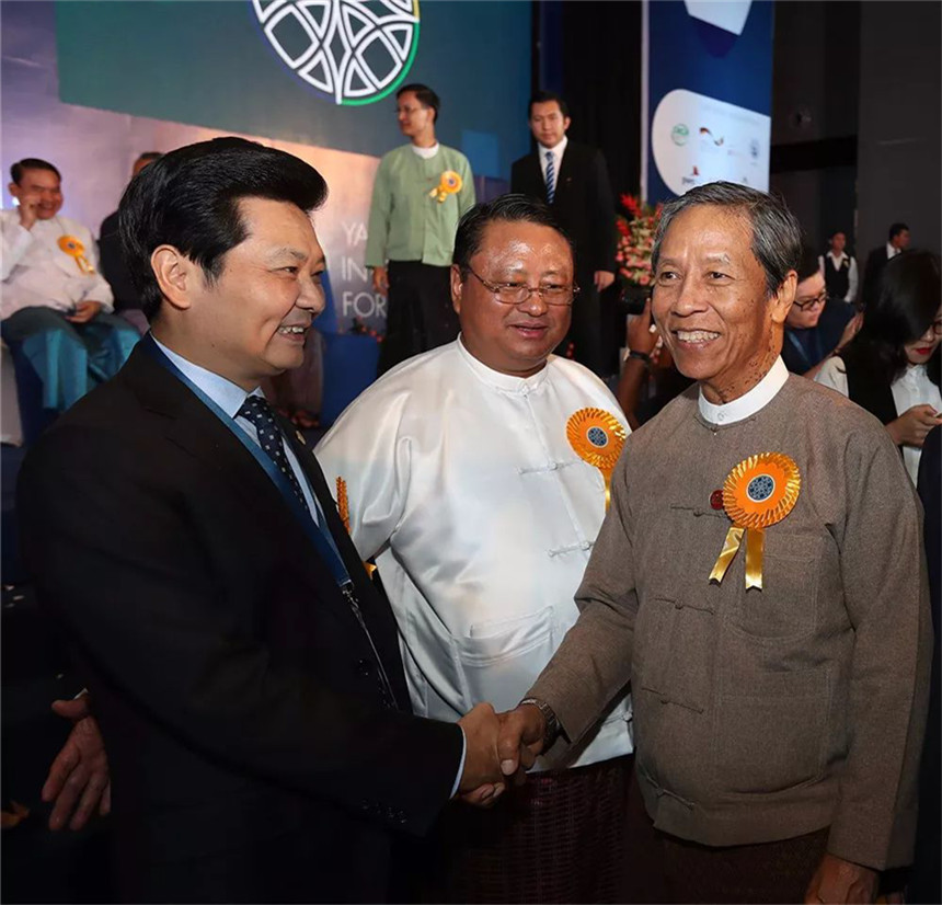 論壇期間,仰光省省長吳漂敏登(H.E. U Phyo Min Thein)親切會見了受邀參加論壇的中資企業(yè)代表寶鷹集團(tuán)董事局主席古少明一行。