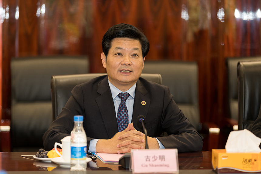 ▲寶鷹集團(tuán)董事局主席古少明表示期待雙方能以本次交流為契機(jī),打開發(fā)展共贏局面