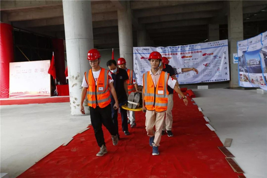 深圳柔宇顯示技術有限公司采購中心總監(jiān)張楊洋、廠務中心總監(jiān)熊成文、基建工程部經(jīng)理曹銀,世源科技工程有限公司安全經(jīng)理馬盼龍,廣州珠江工程建設監(jiān)理有限公司總監(jiān)關鍵剛、總監(jiān)代表張小曼,深圳泛華工程集團有限公司項目經(jīng)理陳琳、安全經(jīng)理彭衛(wèi)軍,寶鷹集團副總裁羅志龍參與演習。