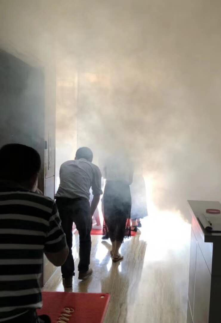 下午三時許,當(dāng)滾滾濃煙觸發(fā)煙霧報警后,警笛聲響起,遇險人員用濕毛巾、衣物捂住口鼻,以彎腰半蹲姿勢有序疏散至安全區(qū),消防水車迅速抵達(dá)進行滅火,演練井然有序,達(dá)到了預(yù)期效果。