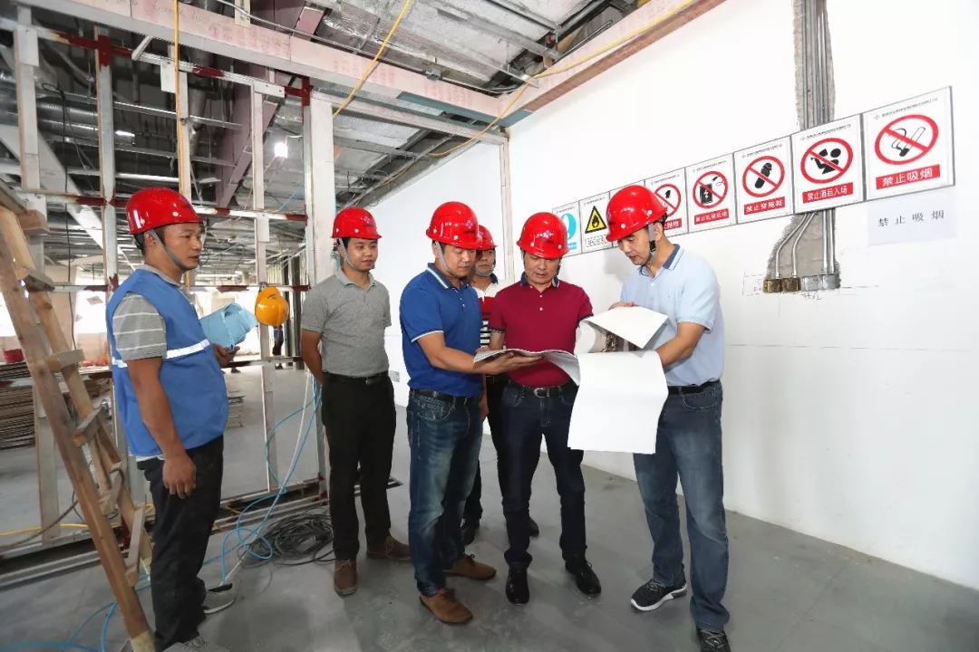 ▲ 寶鷹集團(tuán)董事局主席古少明在天璣財(cái)富平安100層辦公室裝修項(xiàng)目部詳細(xì)了解項(xiàng)目進(jìn)度