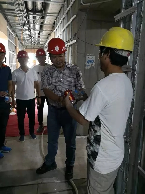 ▲ 寶鷹集團(tuán)執(zhí)行總裁于泳波慰問(wèn)項(xiàng)目部同事,向堅(jiān)守崗位的同事致敬