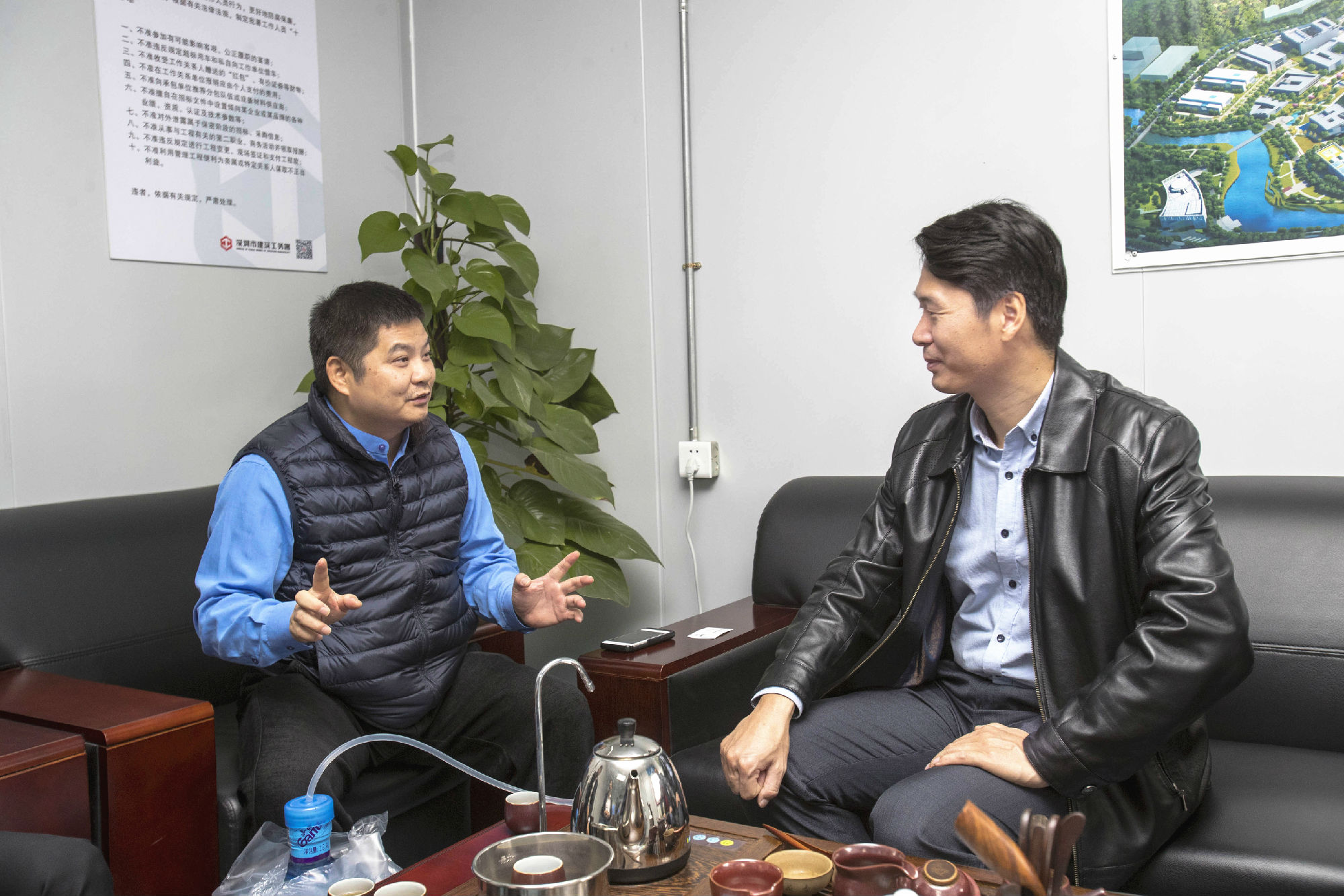 寶鷹集團(tuán)常務(wù)副總裁古樸實(shí)地了解項(xiàng)目進(jìn)度、材料采購(gòu)、綠色安全文明施工等情況,參觀了項(xiàng)目部和精裝樣板房。