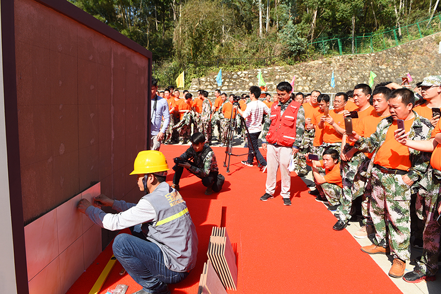 2019年2月,寶鷹集團(tuán)在千人素質(zhì)拓展活動(dòng)期間亦舉辦了工匠技術(shù)展示活動(dòng),將打膠、石膏板封板、貼瓷磚、木床安裝等多項(xiàng)工種搬上舞臺(tái),以何友幸為代表的工匠師傅們?cè)诂F(xiàn)場(chǎng)為同事們呈現(xiàn)了一場(chǎng)別開生面的工藝饕餮盛宴。