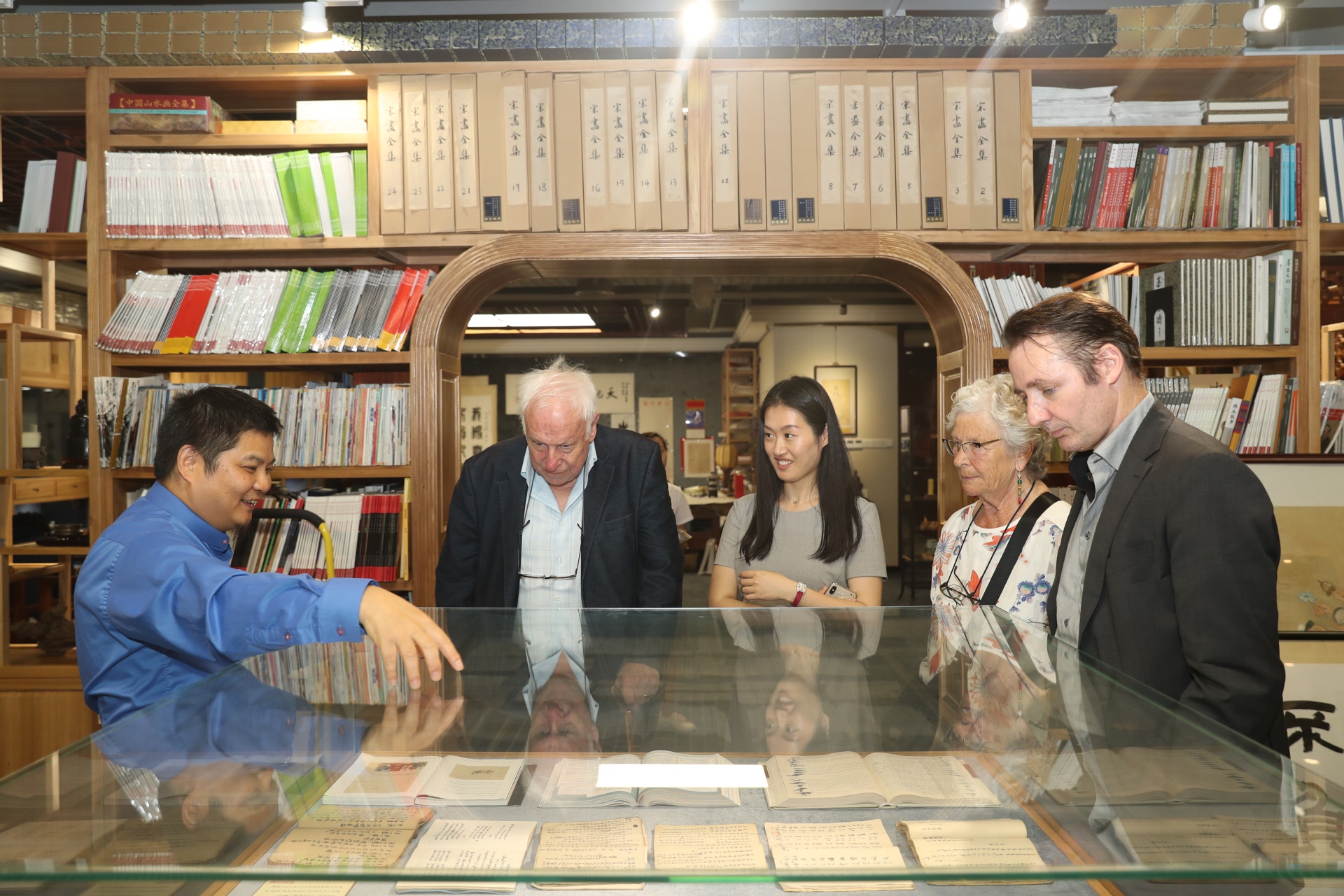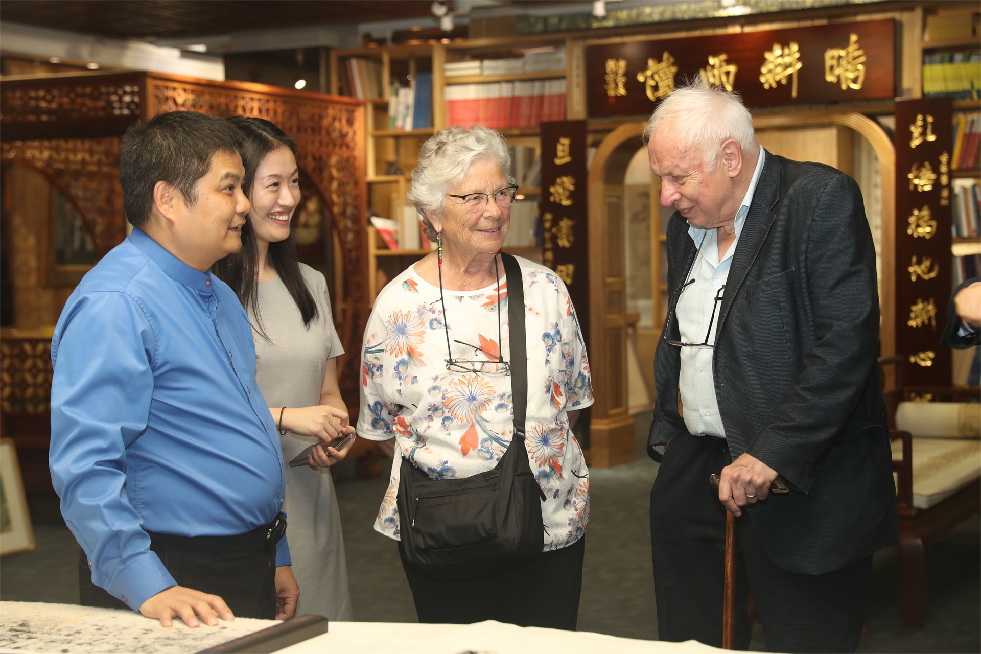 ▲ 托馬斯院士在寶鷹集團(tuán)副總裁古樸的陪同下參觀寶鷹美術(shù)館