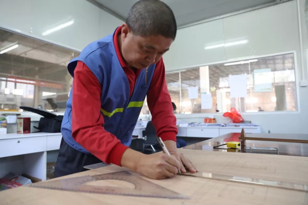 寶鷹集團(tuán)匠人何友幸,以在木制家具行業(yè)中從業(yè)三十多年的經(jīng)驗(yàn),細(xì)致的展現(xiàn)了建筑中榫卯結(jié)構(gòu)的特色之處。他堅(jiān)持對榫卯的每個(gè)制作步驟精益求精,將自己的一片匠心賦于其中,在一榫一卯之間,一分一合之際,繼承著中國幾千年傳統(tǒng)工藝文化的精華。