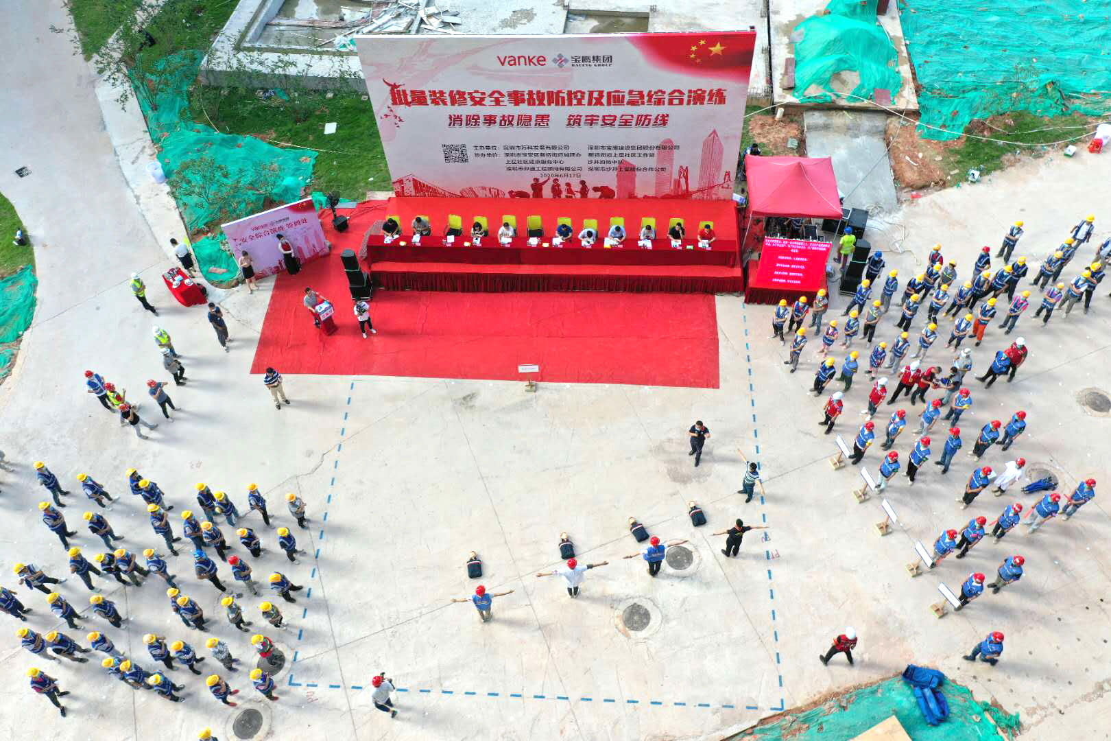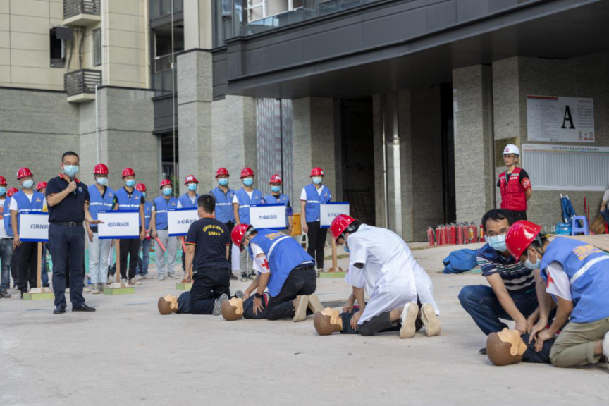 6月17日下午,由深圳萬(wàn)科與寶鷹集團(tuán)聯(lián)合主辦,寶安區(qū)新橋街道城建辦、新橋街道上星社區(qū)工作站、上星社區(qū)健康服務(wù)中心、沙井消防中隊(duì)、深圳市邦迪工程顧問(wèn)有限公司、深圳市沙井上星股份合作公司協(xié)辦的主題為“消除事故隱患 筑牢安全防線(xiàn)”的批量裝修安全事故防控及應(yīng)急救援綜合演練在深圳萬(wàn)科星城名邸項(xiàng)目舉行。