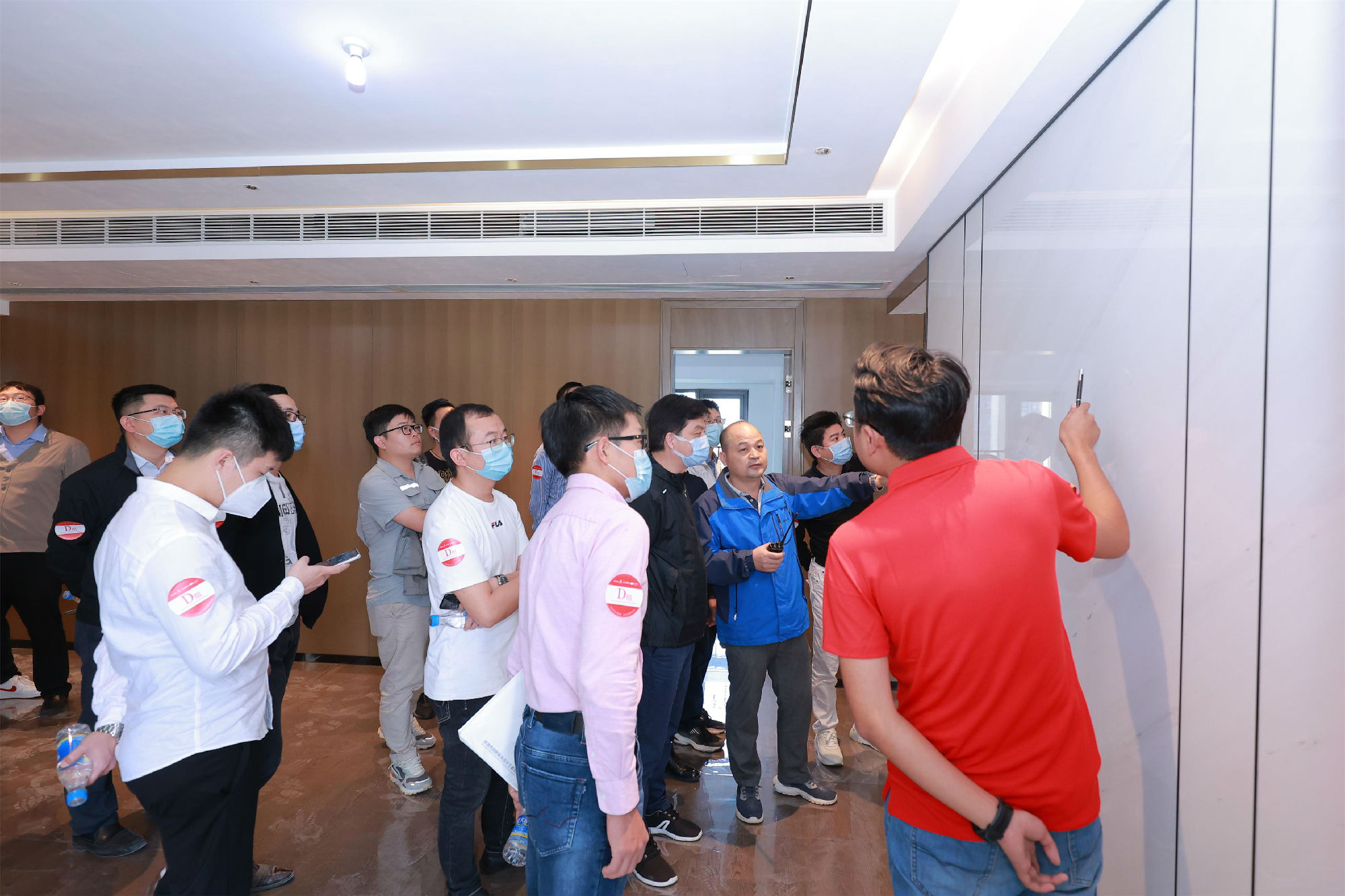 本次觀摩會以“匠心打造行業(yè)標(biāo)桿,品質(zhì)引領(lǐng)精裝發(fā)展”為主題,旨在加強(qiáng)建筑裝飾企業(yè)間技術(shù)交流,提升行業(yè)批量精裝修業(yè)務(wù)能力,弘揚(yáng)工匠精神,引領(lǐng)精裝發(fā)展。項目現(xiàn)場,與會人員先后觀摩了精裝樣板間和工序樣板間,詳細(xì)了解了油漆、燈槽、卡式龍骨吊頂、地面石材鋪貼施工安裝工藝以及全過程實測實量等相關(guān)內(nèi)容。