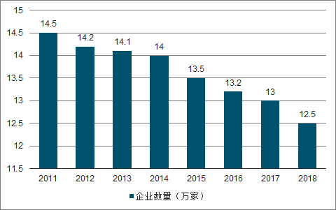 2011-2018年建筑裝飾企業(yè)數(shù)量趨勢
