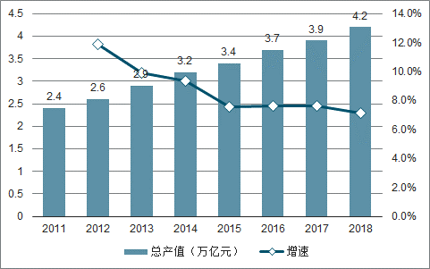 2012-2018年中國建筑裝飾行業(yè)產(chǎn)值及增速趨勢