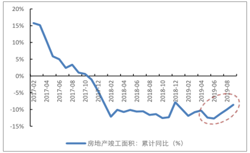 2017-2019.8房地產(chǎn)竣工面積累計同比