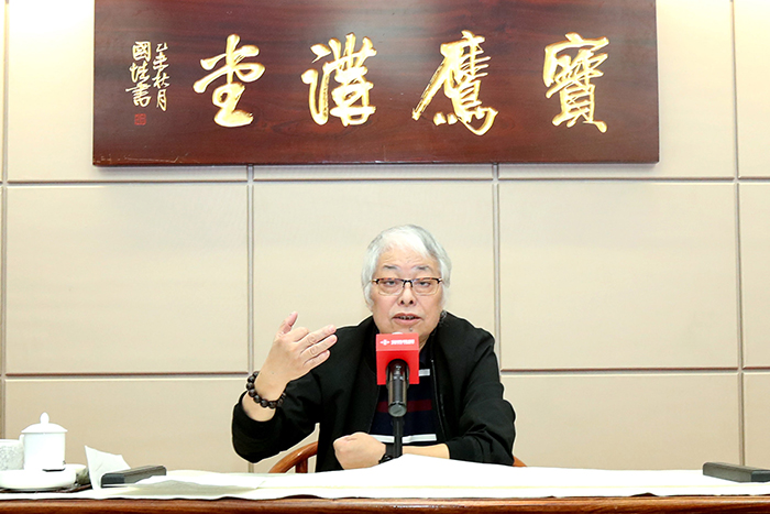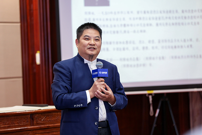 講堂中,周國(guó)城通過解讀大量作品,分析了王羲之、王鐸、張大千、吳昌碩、齊白石、八大山人、任伯年等名家在中國(guó)畫領(lǐng)域的特點(diǎn)和成績(jī),并從他們的作品中解讀中國(guó)精神。他認(rèn)為中國(guó)畫中的詩(shī)書畫印四元素是相輔相成、珠聯(lián)璧合的關(guān)系,是千百年來文化發(fā)展的結(jié)晶,是各種文化要素的高度凝練,是世界文化的瑰寶。相比西洋畫的寫實(shí),中國(guó)畫的寫意更側(cè)重于哲學(xué)層面的意義,中國(guó)繪畫是一種難度、一種高度、一種精神,值得所有國(guó)人繼承和發(fā)揚(yáng)。