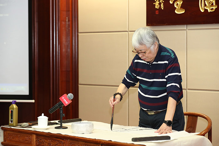 在與聽眾互動(dòng)中,周國(guó)城現(xiàn)場(chǎng)潑墨教學(xué)、深情演示,指出興趣是最好的老師,堅(jiān)持是勝利的法寶,告誡大家學(xué)習(xí)一定要建立在興趣的基礎(chǔ)上,通過持之以恒、長(zhǎng)年累月的練習(xí),從量變到質(zhì)變,方可取得某個(gè)領(lǐng)域的成績(jī)。