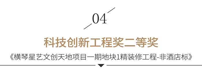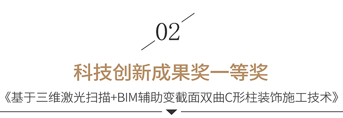 本次公布的名單中,寶鷹集團的《廣西金融廣場酒店二次裝飾設計》獲設計創(chuàng)新獎一等獎,《基于三維激光掃描+BIM輔助變截面雙曲C形柱裝飾施工技術》獲科技創(chuàng)新成果獎一等獎,《大空間采光頂桁架結構鋁板飾面施工技術》獲科技創(chuàng)新成果獎二等獎,《橫琴星藝文創(chuàng)天地項目一期地塊1精裝修工程-非酒店標》、《中國海南?;◢u國際會議中心室內精裝修工程》獲科技創(chuàng)新工程獎二等獎。
