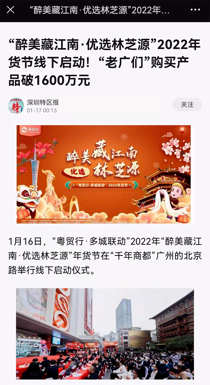 據(jù)了解,本次年貨節(jié)從2021年12月開始,將延續(xù)至2022年2月,通過“線上+線下”選購方式,依托林芝源“7+2”消費(fèi)援藏平臺對接西藏林芝豐富的供應(yīng)鏈資源,依托“粵貿(mào)行”貿(mào)易數(shù)字化平臺整合“粵省事”、“粵商通”、“粵政易”三大粵系列平臺資源,精準(zhǔn)對接市場,進(jìn)行文化賦能、數(shù)字賦能,把西藏林芝的地理標(biāo)志產(chǎn)品、特色產(chǎn)品引進(jìn)“千年商都”,推向粵港澳大灣區(qū),助力林芝產(chǎn)品乃至產(chǎn)業(yè)線上化。