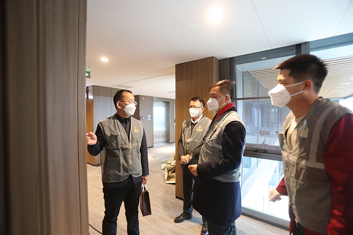 2月1日,農(nóng)歷大年初一,寶鷹建設(shè)董事長(zhǎng)薛依東、總裁于泳波、常務(wù)副總裁劉清松一行來到灣區(qū)會(huì)展國(guó)際酒店項(xiàng)目,檢查項(xiàng)目施工和疫情防控工作,看望慰問春節(jié)期間堅(jiān)守崗位的一線建設(shè)者,并代表公司領(lǐng)導(dǎo)班子向節(jié)日期間奮戰(zhàn)在各條戰(zhàn)線的員工及家屬致以新春的問候和美好的祝福。