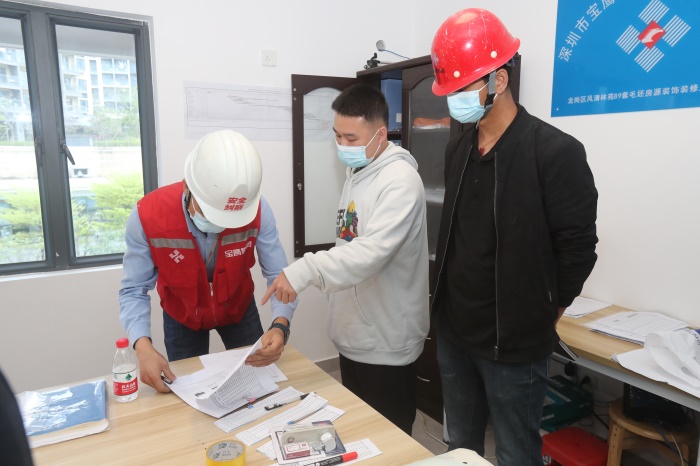 3月25日,寶鷹集團總裁于泳波帶隊檢查深圳龍崗區(qū)風(fēng)清林苑、大族云峰人才住房項目,檢查項目復(fù)工復(fù)產(chǎn)、疫情防控、安全生產(chǎn)等工作,推進項目建設(shè)穩(wěn)步進行。集團總工程師王建國、董事長助理兼總裁辦主任梁淞、總裁助理兼工程管理中心總經(jīng)理許雪峰及相關(guān)部門負責(zé)人一同檢查。