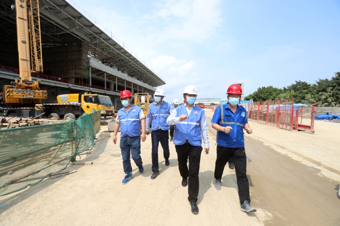 4月13日、14日,寶鷹集團(tuán)總裁于泳波帶隊(duì)檢查珠海空港國際智慧物流園、珠海機(jī)場(chǎng)改擴(kuò)建工程﹙二標(biāo)段裝修裝飾及機(jī)電工程、一標(biāo)段土建施工總承包幕墻專業(yè)分包工程)、橫琴科創(chuàng)中心-廣東省智能科學(xué)與技術(shù)研究院、珠海天恒灣景花園精裝修項(xiàng)目,檢查項(xiàng)目疫情防控、重點(diǎn)風(fēng)險(xiǎn)源管控和隱患排查等相關(guān)工作,落實(shí)疫情防控,推進(jìn)項(xiàng)目安全生產(chǎn)。寶鷹集團(tuán)副總裁陳龍、總裁助理兼工程管理二部總經(jīng)理陳勤、工程管理一部總經(jīng)理田凱峰、質(zhì)安管理部總經(jīng)理曾山峰、珠海辦事處主任彭偉平及相關(guān)項(xiàng)目負(fù)責(zé)人一同檢查。