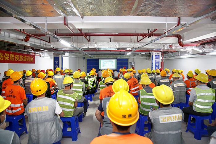 寶鷹集團(tuán)質(zhì)安管理部總經(jīng)理、深圳市裝飾行業(yè)協(xié)會(huì)講師曾山峰進(jìn)行《建筑裝飾工程工傷事故預(yù)防》的專項(xiàng)培訓(xùn),從工傷事故定義、建筑施工行業(yè)常見(jiàn)的工傷類型及預(yù)防措施、職業(yè)病類型及預(yù)防措施、常見(jiàn)工傷事故的急救措施四方面入手,詳細(xì)完整地講解了建筑裝飾工程中的各類工傷事故預(yù)防措施及急救方法,進(jìn)一步提高了項(xiàng)目一線工人的安全防范意識(shí)和安全技能。
