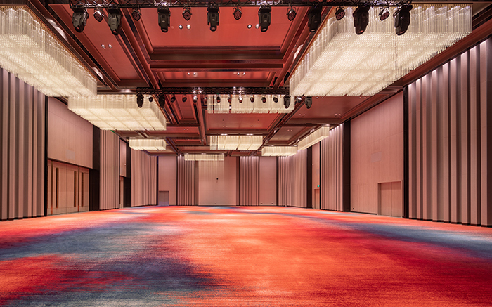 以文化為基礎(chǔ)、以藝術(shù)為載體。酒店多功能廳、宴會(huì)廳全部采用訂制的大型吊燈,搭配淺色墻面和印有文化符號(hào)的地毯,使整個(gè)空間簡潔商務(wù),既有南充特有的文化標(biāo)簽,又有凱悅酒店獨(dú)有的品牌調(diào)性。同時(shí),裝配的視聽系統(tǒng)、遠(yuǎn)程打印、視頻會(huì)議等智能設(shè)備,可以滿足商務(wù)會(huì)議、大型會(huì)展、婚禮等不同規(guī)格活動(dòng)需求。