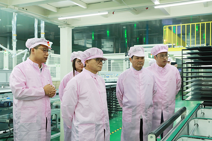 8月30日,在勤誠(chéng)達(dá)控股董事局主席古耀明,億晶光電董事長(zhǎng)楊慶忠、總裁唐駿的陪同下,古少明深入了解了億晶光電發(fā)展歷程、中長(zhǎng)期規(guī)劃以及光伏行業(yè)發(fā)展現(xiàn)狀和前景,實(shí)地參觀億晶光電生產(chǎn)車(chē)間,了解電池制造的各個(gè)工藝環(huán)節(jié)。