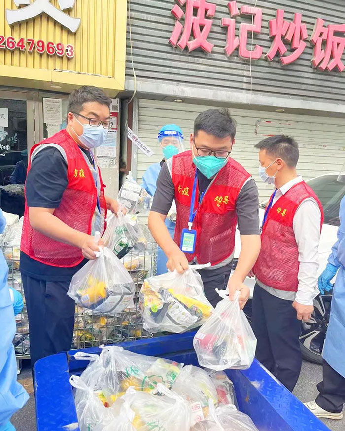 在寶鷹第五黨支部書記、副總裁陳貴涌的帶領(lǐng)下,志愿者們迅速集結(jié)到位,并在社區(qū)的協(xié)調(diào)安排下,快速化整為零,分成1個指揮組和多個網(wǎng)格行動小組,開展維護秩序、核酸檢測、做流調(diào)、環(huán)境消殺、垃圾清運、物資配送、配藥送菜、人員轉(zhuǎn)運等工作。大家相互配合,將各項工作安排得井井有條,有效消除了居民的焦慮情緒。