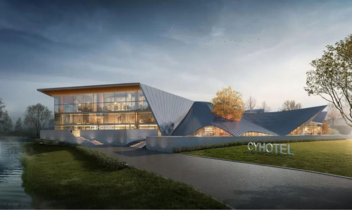 項目不同于以往規(guī)矩的建筑設(shè)計,將黃山楓葉融入設(shè)計中,形態(tài)回應(yīng)如鳳,與黃山相望,由自然而來。揭開朝陽村“詩意民宿村”的未來畫卷。建筑似從地面生長蔓延而出,宛如起伏的山體的延續(xù)。將建筑融入到環(huán)境中,綿延了城市的風(fēng)光,消解了硬性的界面形式,能從各個角落望見窗外的風(fēng)景,盡最大可能地與自然進(jìn)行對話。