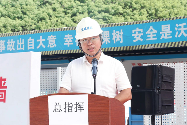 寶鷹建設(shè)集團董事長肖家河宣布演練開始