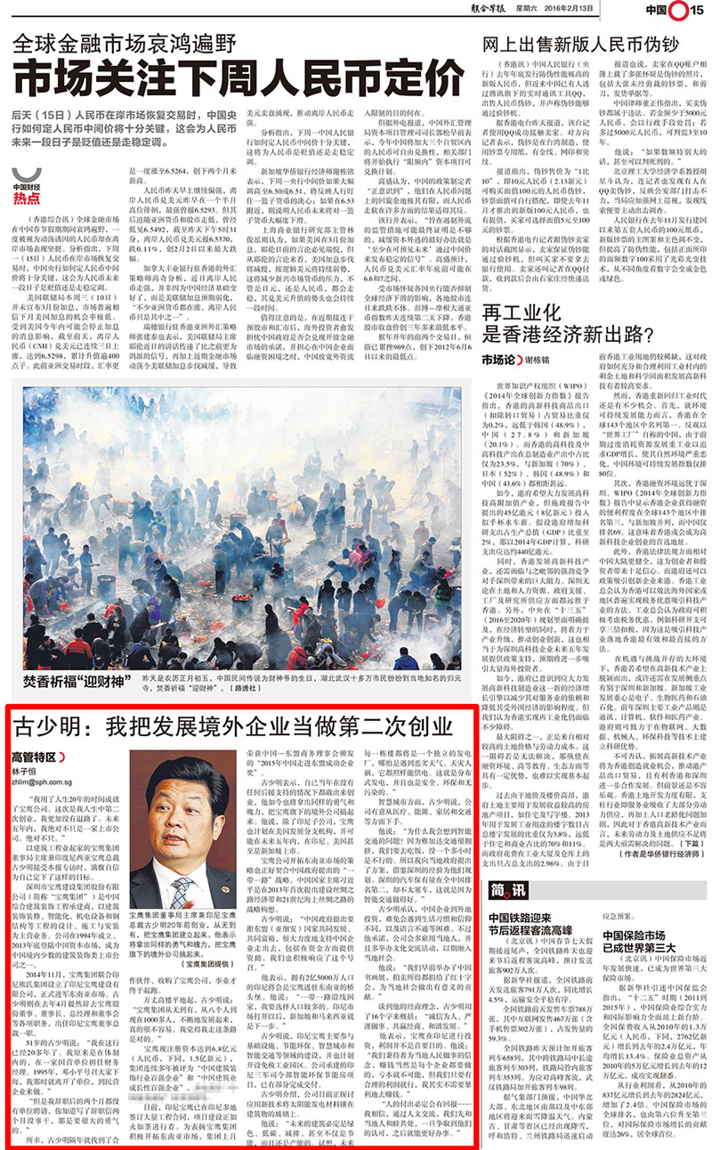 近日,新加坡《聯(lián)合早報》專題刊發(fā)了對寶鷹集團董事局主席兼印尼寶鷹總裁古少明的專訪。在采訪中他表示,將拿出20年前從無到有建立寶鷹集團的勇氣和魄力,把寶鷹旗下的境外公司搞起來。