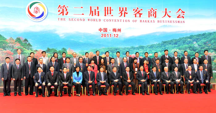 2011年12月5日上午10時(shí),客都亮勝藝術(shù)中心國(guó)歌嘹亮,全場(chǎng)肅立:第二屆世界客商大會(huì)在全球1億3千萬(wàn)客家人的矚目中拉開(kāi)帷幕,來(lái)自世界13個(gè)國(guó)家和地區(qū),國(guó)內(nèi)13個(gè)省、自治區(qū)、直轄市及港澳臺(tái)的1000多名客家商界精英和近100個(gè)客屬團(tuán)聚首客都,齊襄盛舉。此外,作為首次參加世界客商大會(huì)的廣東普寧客家地區(qū)也派出了由林良、黃清漢、賴(lài)賢、溫秋亮等優(yōu)秀代表共同組成的客屬團(tuán)熱情參加盛會(huì)、共謀發(fā)展大計(jì)。
