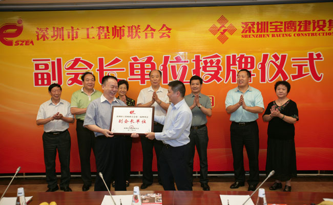 據(jù)悉,為給深圳建筑行業(yè)做出表率,打造深圳市建筑裝飾裝修龍頭企業(yè),深圳市工程師聯(lián)合會(huì)決定授予寶鷹集團(tuán)副會(huì)長(zhǎng)單位。2013年9月2日下午,副會(huì)長(zhǎng)單位授牌儀式在寶鷹集團(tuán)舉行,原深圳市委書記、深圳市工程師聯(lián)合會(huì)榮譽(yù)會(huì)長(zhǎng)厲有為,深圳市第四屆人大常委會(huì)副主任邱玫、深圳市工程師聯(lián)合會(huì)會(huì)長(zhǎng)段忠等領(lǐng)導(dǎo)以及寶鷹集團(tuán)董事局主席古少明、董事常務(wù)副總裁許平、副總裁古樸等參加了儀式。