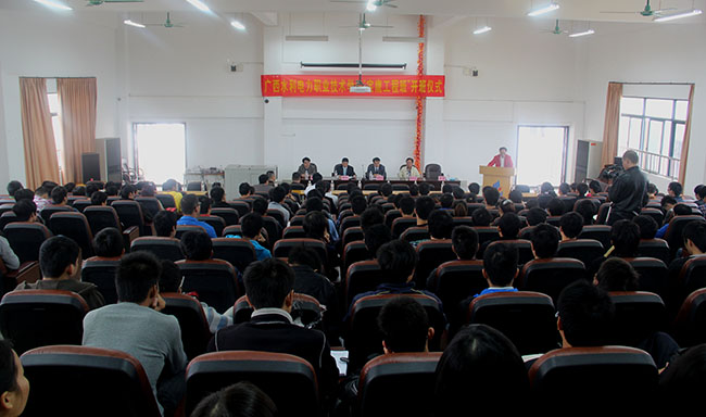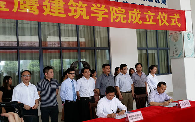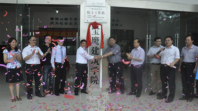 6月6日,寶鷹建筑學院在廣西水利電力職業(yè)技術學院(下簡稱“廣西水電學院”)正式揭牌成立。寶鷹集團副總裁古樸先生、廣西水電學院黨委書記盧西寧先生、院長劉延明先生等領導以及寶鷹集團員工代表和學院師生代表100多人參加了一個簡樸而有里程碑意義的簽約揭牌儀式。儀式由廣西水電學院黃偉軍副院長主持,古樸副總裁與劉延明院長簽訂合作協(xié)議,與盧西寧書記共同為寶鷹建筑學院揭牌。